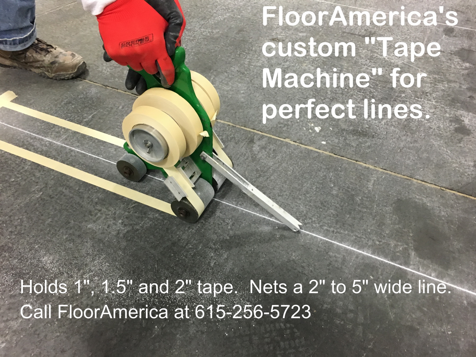 Description: This tool will make life so much easier when applying safety lines. Place one center chalk line; then push to apply both sides in one pass. This machine comes with guides to hold 1"; 1-1/2" and 2" tape. Add a circle or 3-Point kit to make a basketball court. FREE Ground Freight on this product. Sizes: FloorAmerica Product Key Features: Price: | |